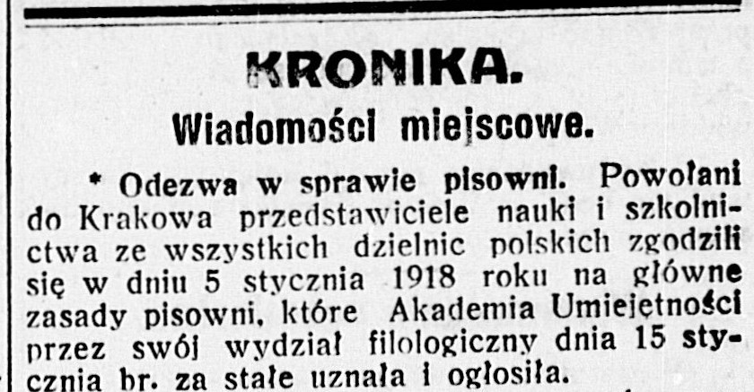 Z kolei informacja o odezwie w sprawie polskiej pisowni znalazła się w „Dzienniku poznańskim” na jednej z dalszych stron, usytuowana skromnie w dziale „Wiadomości miejscowe”. Nie brak w niej jednak słów, które podkreślają znaczenie wspólnoty języka dla podkreślenia jedności między rodakami ze wszystkich zaborów.