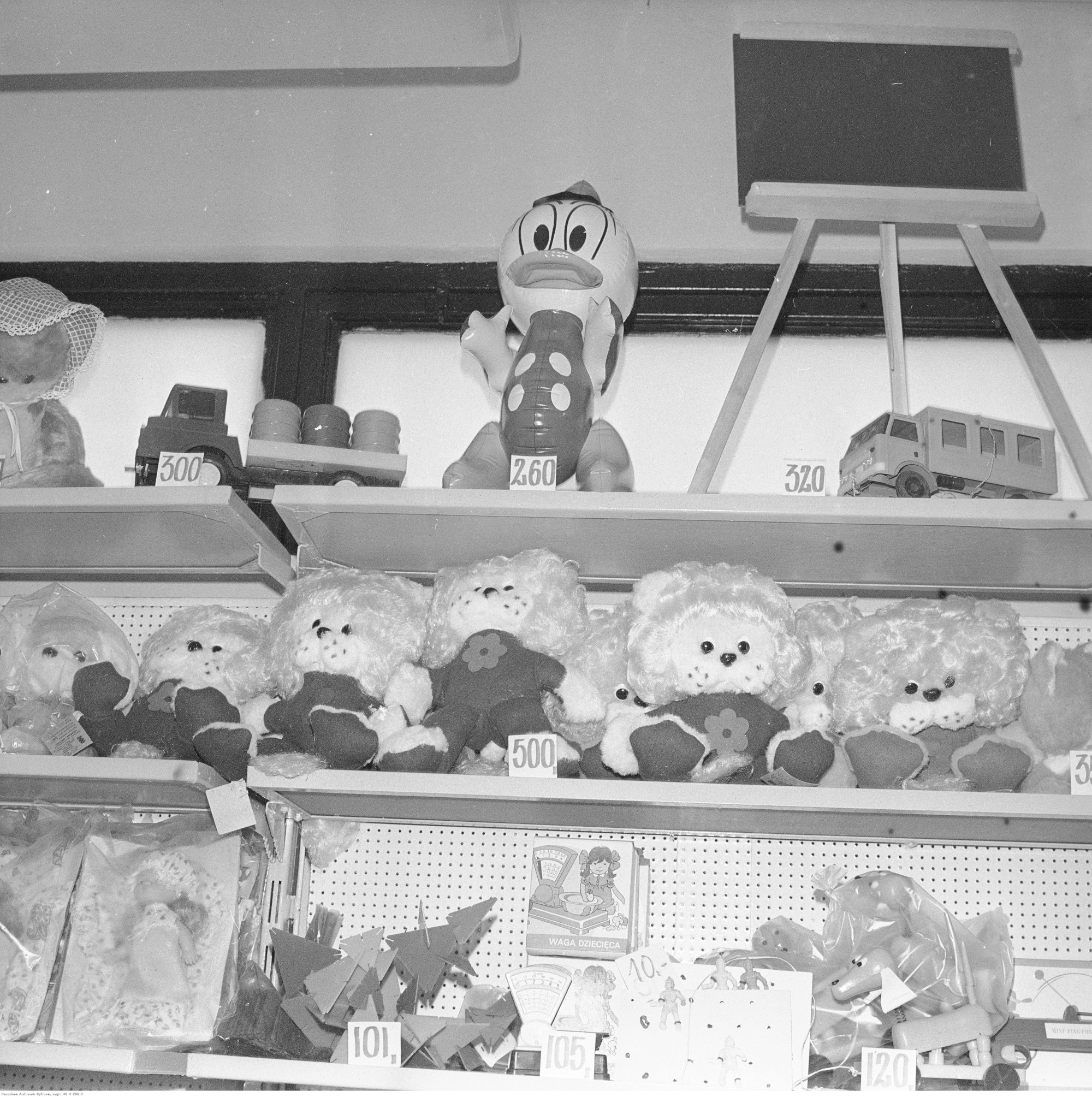 Krajowe Targi Poznańskie „Wiosna 74”. Ekspozycja zabawek dmuchanych i pluszowych (fot. Narodowe Archiwum Cyfrowe, sygn. 40-4-306-6)Dziecko na rowerku w Centrum Zdrowia Dziecka w Warszawie (fot. Narodowe Archiwum Cyfrowe, sygn. 40-L-8-5)Krajowe Targi Poznańskie „Wiosna 74” (fot. Narodowe Archiwum Cyfrowe, sygn. 40-4-306-10)Giełda rzemiosła w Pałacu Kultury i Nauki w Warszawie. Stoisko z zabawkami, 1976 r. (fot. Narodowe Archiwum Cyfrowe, sygn. 40-4-304-6)Sklep z zabawkami, 1950–1960 r. (fot. Narodowe Archiwum Cyfrowe, sygn. 51-279-1)Krajowe Targi Poznańskie „Wiosna 74”, Ekspozycja zabawek pluszowych (fot. Narodowe Archiwum Cyfrowe, sygn. 40-4-306-1)Pluszowy pies, 1972–1980 r. (fot. Narodowe Archiwum Cyfrowe, sygn. 40-Z-42-1)Sklep „Wesoły Tomek” Warszawskiej Spółdzielni Spożywców „Społem” przy ul. Cieszkowskiego 1/3 w Warszawie, 1967 r. (fot. Narodowe Archiwum Cyfrowe, sygn. 40-4-169-3)Sklep z zabawkami przy ul. Nowy Świat 57 w Warszawie, 1979 r. (fot. Narodowe Archiwum Cyfrowe, sygn. 40-4-210-5)Zajęcia w sekcjach w Pałacu Młodzieży w Warszawie. Wypożyczalnia sprzętu sportowego, zabawek i wielu innych przedmiotów, tak zwana „igroteka”, 1955 r. (fot. Narodowe Archiwum Cyfrowe, sygn. 51-367-9)Pudel Agat z nadmuchiwanym psem zabawką (fot. Narodowe Archiwum Cyfrowe, sygn. 40-P-359-6)Centralny Dom Dziecka u zbiegu ul. Kruczej i Alej Jerozolimskich w Warszawie, 1974 r. (fot. Narodowe Archiwum Cyfrowe, sygn. 40-4-244-3)Świąteczne iluminacje na Domach Towarowych „Centrum” w Warszawie, 1973 r. (fot. Narodowe Archiwum Cyfrowe, sygn. 40-W-166-9)Trzykołowe rowerki w sklepie z zabawkami, 1950–1960 r. (fot. Narodowe Archiwum Cyfrowe, sygn. 51-279-3)Krajowe Targi Poznańskie „Wiosna 74”, Ekspozycja zabawek pluszowych (fot. Narodowe Archiwum Cyfrowe, sygn. 40-4-306-11)Stoisko z zabawkami w Hali Mirowskiej, 1979 r. (fot. Narodowe Archiwum Cyfrowe, sygn. 40-4-256-22)Krajowe Targi Poznańskie „Wiosna 74”. Ekspozycja zabawek zdalnie sterowanych (fot. Narodowe Archiwum Cyfrowe, sygn. 40-4-306-7)Sklep z zabawkami przy ul. Nowy Świat 57 w Warszawie, 1979 r. (fot. Narodowe Archiwum Cyfrowe, sygn. 40-4-210-1)Stoisko z zabawkami w Hali Mirowskiej, 1979 r. (fot. Narodowe Archiwum Cyfrowe, sygn. 40-4-256-24)Dom Handlowy Smyk u zbiegu ul. Kruczej i Alej Jerozolimskich w Warszawie, 1975 r. (fot. Narodowe Archiwum Cyfrowe, sygn. 40-4-245-1)Spółdzielczy Dom Handlowy „Feniks” u zbiegu ul. Siennej i ul. Żelaznej w Warszawie, stoisko z zabawkami i wyrobami „Corridori”,1972–1975 r. (fot. Narodowe Archiwum Cyfrowe, sygn. 40-4-252-2)Krajowe Targi Poznańskie „Wiosna 74”, ekspozycja zabawek (fot. Narodowe Archiwum Cyfrowe, sygn. 40-4-306-3)Krajowe Targi Poznańskie „Wiosna 74”, ekspozycja zabawek (fot. Narodowe Archiwum Cyfrowe, sygn. 40-4-306-2)Sklep „Maluszek” Warszawskiej Spółdzielni Spożywców „Społem” przy ul. Kochanowskiego 1 w Warszawie, 1982 r. (fot. Narodowe Archiwum Cyfrowe, sygn. 40-4-208-5)Krajowe Targi Poznańskie „Wiosna 74”, ekspozycja zabawek (fot. Narodowe Archiwum Cyfrowe, sygn. 40-4-306-9)