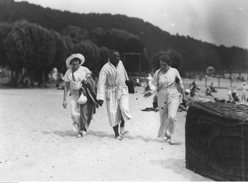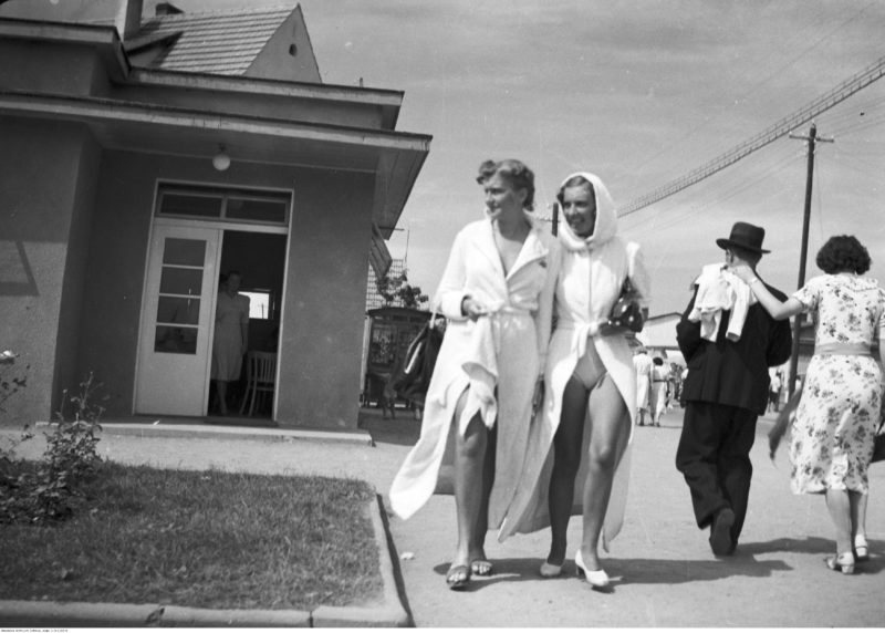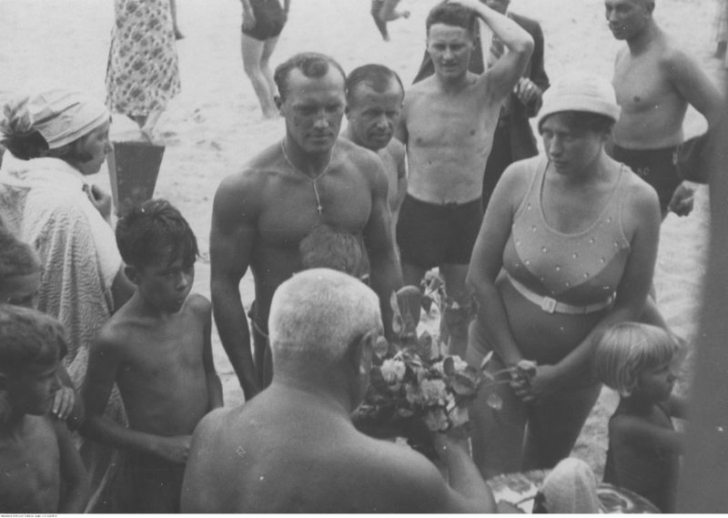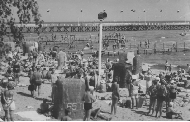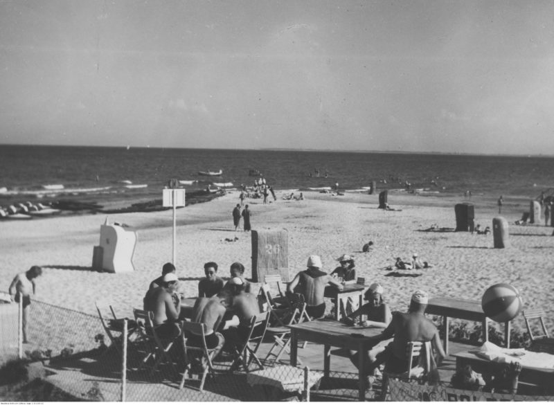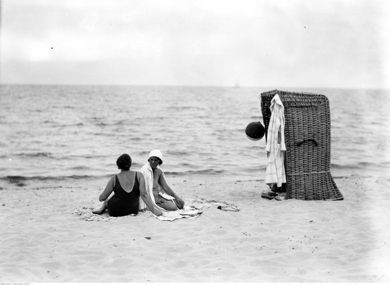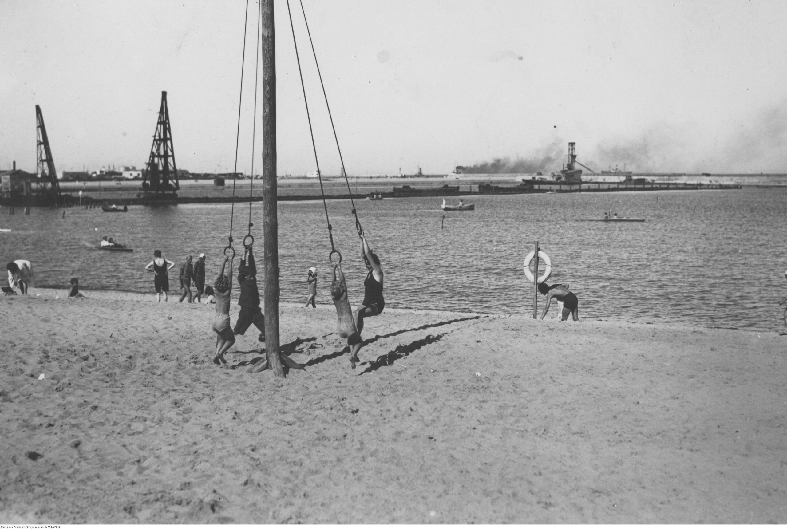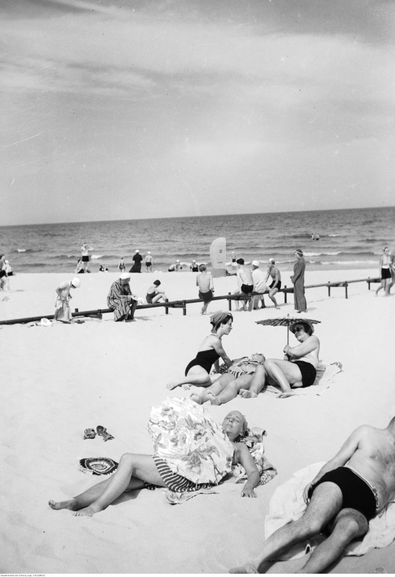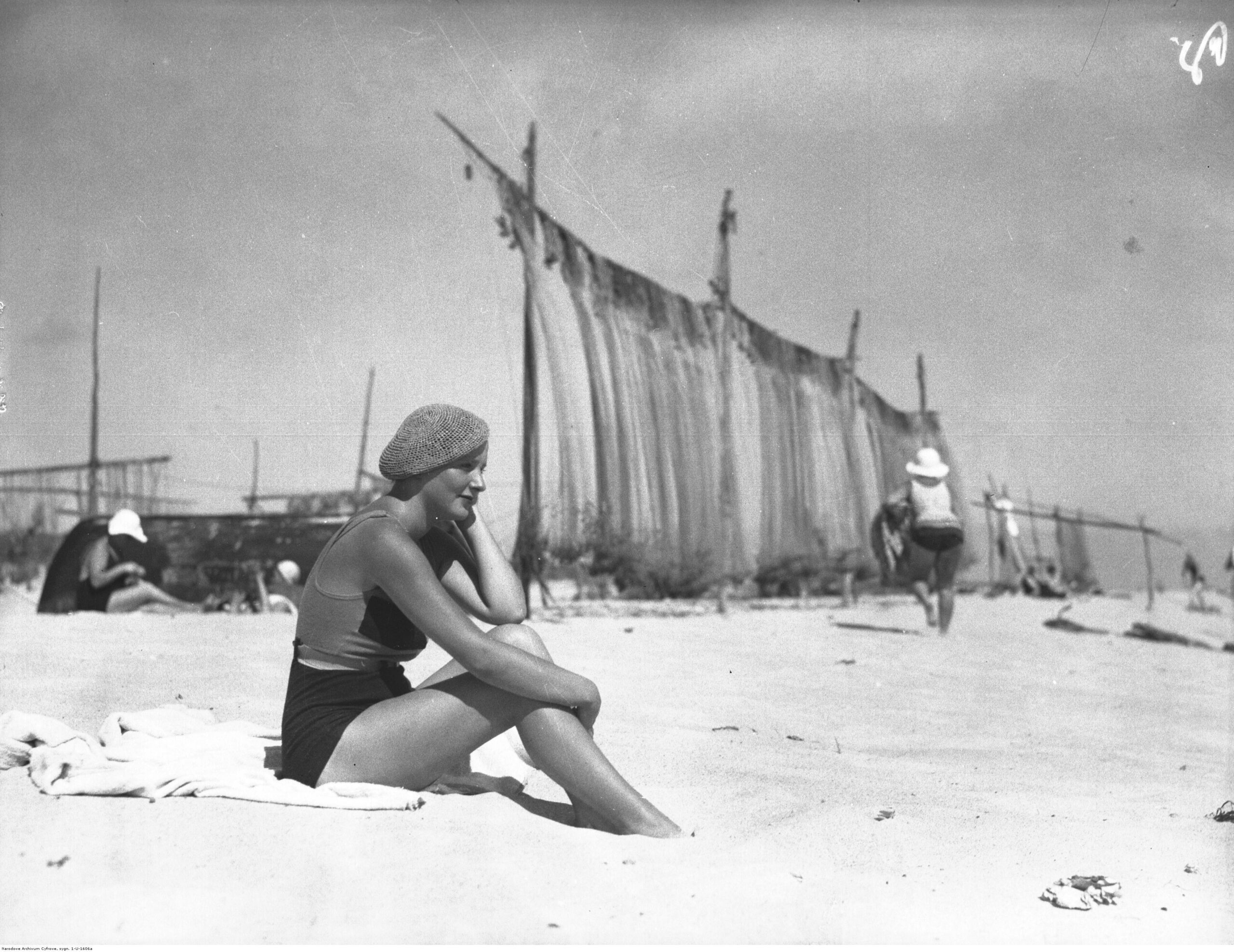 Zabawa na plaży w Gdyni, 1938–1939 r. (fot. Narodowe Archiwum Cyfrowe, sygn. 1-U-1180-14, domena publiczna)Bar na plaży w Gdyni, 1938–1939 r. (fot. Narodowe Archiwum Cyfrowe, sygn. 1-U-1180-12, domena publiczna)Jedna z uczestniczek konkursu Miss Gdynia 1932 na plaży w otoczeniu mężczyzn (fot. Narodowe Archiwum Cyfrowe, sygn. 1-K-12645-1, domena publiczna)Plażowicze w Gdyni, 1938–1939 r. (fot. Narodowe Archiwum Cyfrowe, sygn. 1-U-1180-13, domena publiczna)Plażowiczki w Karwi, lipiec 1932 r. (fot. Narodowe Archiwum Cyfrowe, sygn. 1-U-2019-2, domena publiczna)Pasażerki na pokładzie statku MS „Piłsudski” (fot. Narodowe Archiwum Cyfrowe, sygn. 1-G-5112, domena publiczna)Konstruktor Ludwik Nieczuja-Ihnatowicz prezentujący sześcioosobowy pływak własnego pomysłu z silnikiem (fot. Narodowe Archiwum Cyfrowe, sygn. 1-G-5282, domena publiczna)