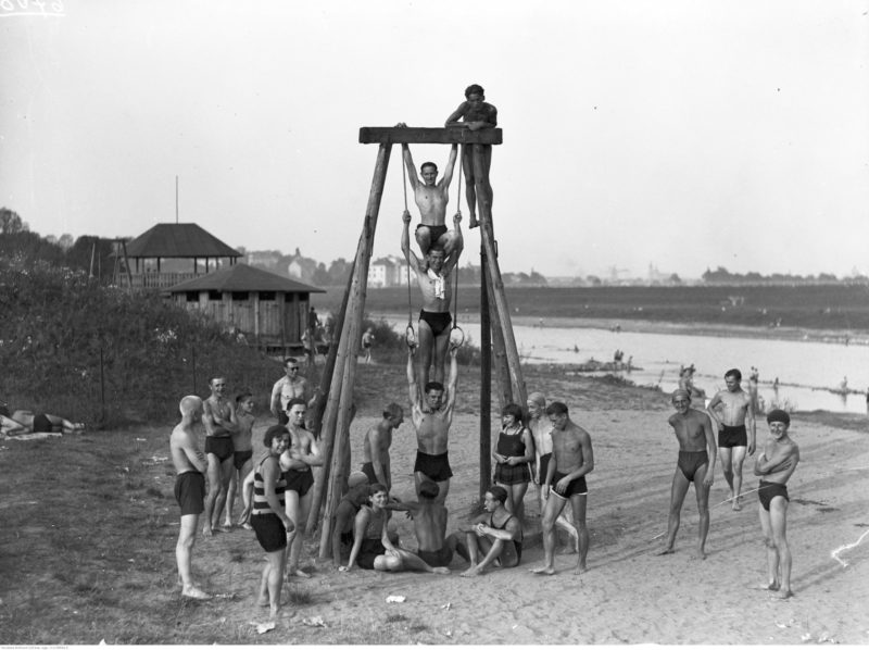 Kuracjusze podczas lekcji tańca prowadzonej przez Sama z zespołu Kataszka. Kąpielisko siarczano-solankowe Truskawiec-Pomiarki (fot. Narodowe Archiwum Cyfrowe, sygn. 1-C-664-7, domena publiczna)Kuracjusze na plaży w kąpielisku siarczano-solankowym Truskawiec-Pomiarki (fot. Narodowe Archiwum Cyfrowe, sygn. 1-C-663-6, domena publiczna)Pijalnia wód mineralnych w zdrojowisku Iwonicz Zdrój (fot. Narodowe Archiwum Cyfrowe, sygn. 1-U-1725-2, domena publiczna)Kuracjuszki w kąpielisku siarczano-solankowym Truskawiec-Pomiarki (fot. Narodowe Archiwum Cyfrowe, sygn. 1-C-664-6, domena publiczna)Kuracjusze w kąpielisku siarczano-solankowym Truskawiec-Pomiarki (fot. Narodowe Archiwum Cyfrowe, sygn. 1-C-664-5, domena publiczna)Grupa naukowców na wczasach w Truskawcu. Fryderyk Papee (1), Władysław Henryk Abraham (2), Stanisław Ptaszycki (3), Julian Talko-Hryniewicz (4), Bronisław Gubrynowicz (5), Adam Chmiel (6) (fot. Narodowe Archiwum Cyfrowe, sygn. 1-N-3, domena publiczna)Zaleszczyki zasłynęły jako mityczne miejsce, w którym przedstawiciele polskich władz uciekający z kraju we wrześniu 1939 roku przekroczyli granicę z Rumunią (w rzeczywistości stało się to w Kutach nad Czeremoszem). Wcześniej jednak miejscowość ta znana była jako polski biegun ciepła i popularny letni kurort z pięknymi plażami nad Dniestrem (fot. Narodowe Archiwum Cyfrowe, sygn. 1-U-8121-5, domena publiczna)Uczestnicy kongresu PEN-clubów w czasie spływu Dunajcem (fot. domena publiczna, sygn. 1-K-2023-15, domena publiczna)Rejs krakowskich aktorów balią po Wiśle z Krakowa do Gdańska. Na zdjęciu widoczni Stanisław Gołębiowski (w środku) i Kazimierz Beroński (z lewej) (fot. Narodowe Archiwum Cyfrowe, sygn. 1-K-12149, domena publiczna)Artyści kabaretu „Cyganeria” na wakacjach. Stoją od lewej: Lena Żelichowska, Zula Pogorzelska, Dora Kalinówna, Konrad Tom i dyrygent Zdzisław Górzyński (1. z prawej) (fot. Narodowe Archiwum Cyfrowe, sygn. 1-K-11293, domena publiczna)Aktorka Maria Andergast podczas wakacji nad jeziorem (fot. Narodowe Archiwum Cyfrowe, sygn. 1-M-1943, domena publiczna)Absolwenci I Państwowego Gimnazjum im. św. Anny w Krakowie podczas wycieczki łodzią i kajakiem do Warszawy (fot. Narodowe Archiwum Cyfrowe, sygn. 1-N-1964-2, domena publiczna)W Warszawie czy Krakowie korzystać można było z miejskich plaż, część z nich była jednak prywatna, a wstęp na nie płatny. Woda z rzeki przepływała przy nich przez duże drewniane baseny z równym dnem, co zapewniało bezpieczeństwo. Na zdjęciu boisko do siatkówki na plaży braci Kozłowskich w Warszawie (fot. Narodowe Archiwum Cyfrowe, sygn. 1-U-7417-1, domena publiczna)Potańcówka na prywatnej plaży „Poniatówka” w Warszawie (fot. Narodowe Archiwum Cyfrowe, sygn. 1-U-7421-9, domena publiczna)Waga elektryczna na „Poniatówce” (fot. Narodowe Archiwum Cyfrowe, sygn. 1-U-7421-6, domena publiczna)Kogo nie stać było na to, by zapłacić 50 groszy za wstęp na prywatną plażę, kąpał się w rzece przy plaży dzikiej. Na zdjęciu funkcjonariusze z Komisariatu Wodnego Policji Państwowej m.st. Warszawy patrolują rzekę przy jednej z ogólnodostępnych plaż (fot. Narodowe Archiwum Cyfrowe, sygn. 1-B-95, domena publiczna)Plażowano również pod Wawelem (fot. Narodowe Archiwum Cyfrowe, sygn. 1-U-3052-2, domena publiczna)Huśtawka na plaży w Krakowie (fot. Narodowe Archiwum Cyfrowe, sygn. 1-U-3052a-2, domena publiczna)Cyganka wróży z kart młodej parze wypoczywającej w lesie w okolicach Warszawy (fot. Narodowe Archiwum Cyfrowe, sygn. 1-F-549-6, domena publiczna)Dzieci w miejskiej fontannie w Katowicach (fot. Narodowe Archiwum Cyfrowe, sygn. 1-U-2108, domena publiczna)Plażę nad Wisłą w Krakowie dzierżawiło również Towarzystwa Uniwersytetu Robotniczego w Krakowie. Działalność różnego rodzaju stowarzyszeń była dla wielu szansą na wakacje, na jakie sami nie mogliby sobie pozwolić (fot. Narodowe Archiwum Cyfrowe, sygn. 1-U-3053-4, domena publiczna)Mecz siatkówki na plaży Towarzystwa Uniwersytetu Robotniczego w Krakowie (fot. Narodowe Archiwum Cyfrowe, sygn. 1-U-3054a-6, domena publiczna)Obóz Związku Młodzieży Chrześcijańskiej Polska YMCA w Kasinie Małej. Uczestnicy obozu oddają honory sztandarowi podczas porannej zbiórki (fot. Narodowe Archiwum Cyfrowe, sygn. 1-P-912-2, domena publiczna)Uczestniczki letniska Związku Młodych Polek w Skawie (fot. Narodowe Archiwum Cyfrowe, sygn. 1-P-871, domena publiczna)Bezrobotne matki na zorganizowanym przez „Caritas” wypoczynku w Czernej (fot. Narodowe Archiwum Cyfrowe, sygn. 1-P-2438, domena publiczna)Niestety, większości mieszkańców Polski pozostawał co najwyżej odpoczynek na ławce przed domem, tak jak tej rodzinie robotniczej ze Lwowa (fot. Narodowe Archiwum Cyfrowe, sygn. 1-P-2225, domena publiczna)