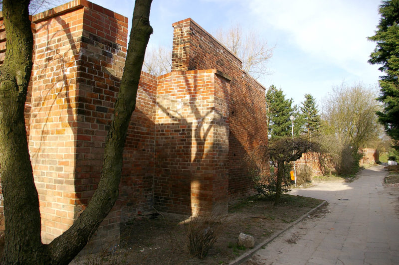 Krótko po lokacji miasta zaczęto je otaczać murami. Historycy podają, że przygotowania do ich budowy rozpoczęto w 1284 roku, Wendland natomiast pisze, że zaczęto je faktycznie wznosić w 1292 roku. Kronikarz jest niezwykle precyzyjny: informuje, że mury miały mieć 46 czatowni z cegieł wypalanych w siedmiu szopach ceglarnianych. Dalej autor stwierdza, że klasztor żeński został objęty murami, ale nie uczestniczył w pracach budowlanych. W 1310 roku rada miejska porozumiała się w tej sprawie z cysterkami i zobowiązały się one do opłacania jednej straży na murach, co również potwierdza stosowny dokument.