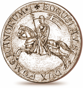 Gdy pieczęć tę zagubiono zaczęto dopiero używać nowej – z wizerunkiem głowy Jana Chrzciciela na misie, który znajdował się również w herbie miasta. W otoku miała ona inny napis: SECRETUM CIVITATIS CUSSLIN. Wendland dotarł do dokumentów, które wspominały, że pieczęć taka miała być używana już w XIV wieku. Jan Chrzciciel był patronem całego biskupstwa kamieńskiego, jego głowa w herbie miasta oznaczała więc, że należy ono do tego biskupstwa.