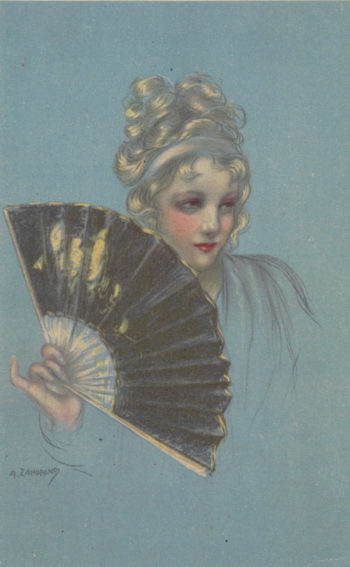 Jeszcze bardziej rozbudowany był system znaków dawanych przy pomocy wachlarza. I tak autor jednego z poradników instruował: „Jestem Ci wzajemną – Rozłożyć wachlarz na kolanach. Pocałuj mnie – Dotknąć ust wachlarzem. Czy mogę mieć nadzieję? – Wachlarz prędko rozłożyć. Jesteś moim ideałem – Dotknąć ustami wachlarza”. Komunikacja tego typu była popularna w kręgach high life’u, wymagała bowiem co najmniej małego balu.