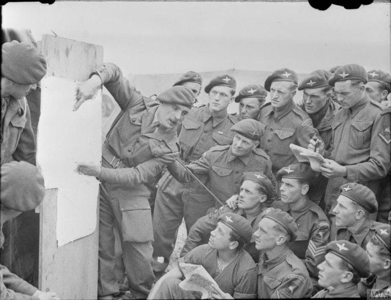 Brytyjscy żołnierze z 22 Samodzielnej Kompanii Spadochronowej 6 Dywizji Powietrznodesantowej w czasie odprawy, 4–5 czerwca 1944 r. (fot. E.G. Malindine, ze zbiorów Imperial War Museum, nr H 39089, IWM Non Commercial Licence)