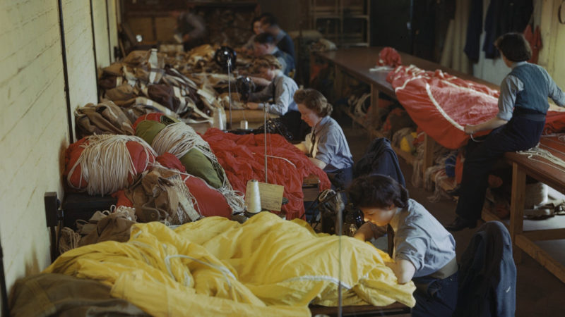Kobiety z żeńskiej służby pomocniczej RAF-u (Women’s Auxiliary Air Force) naprawiają i pakują spadochrony przed inwazją, 31 maja 1944 r. (fot. ze zbiorów Imperial War Museum, nr TR 1783, domena publiczna)