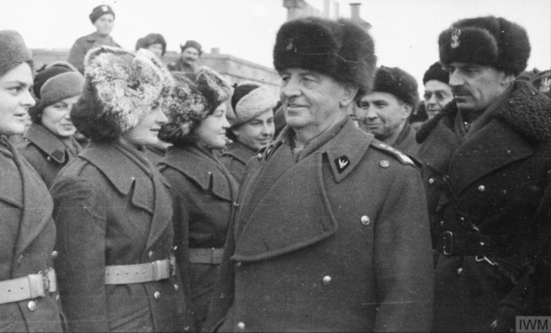 Generał Władysław Sikorski (po prawej widoczny gen. Władysław Anders, a zaraz za Sikorskim płk Leopold Okulicki) dokonuje przeglądu oddziałów Pomocniczej Służby Kobiet, obóz w Buzułuku, grudzień 1941 r. (fot. ze zbiorów Imperial War Museum, sygn. MH 1725, IWM Non Commercial Licence)
