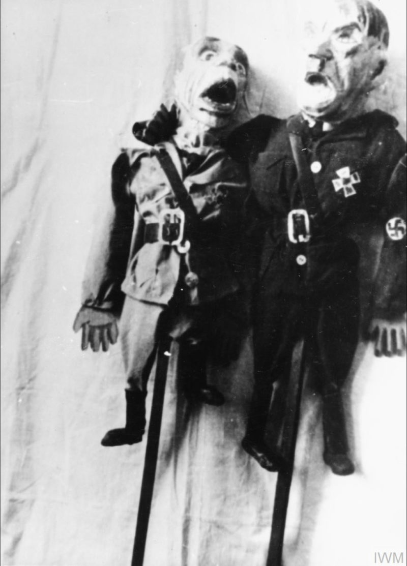 Lalki przedstawiające Hitlera i Goebbelsa wykonane na potrzeby teatrzyku kukiełkowego, prawdopodobnie obóz w Buzułuku, 1941 r. (fot. ze zbiorów Imperial War Museum, sygn. MH 1791, IWM Non Commercial Licence)