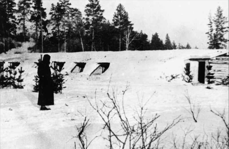 Żołnierz na warcie przy barakach dowództwa, prawdopodobnie obóz w Buzułuku, grudzień 1942 r. (fot. ze zbiorów Imperial War Museum, sygn. MH 1766, IWM Non Commercial Licence)