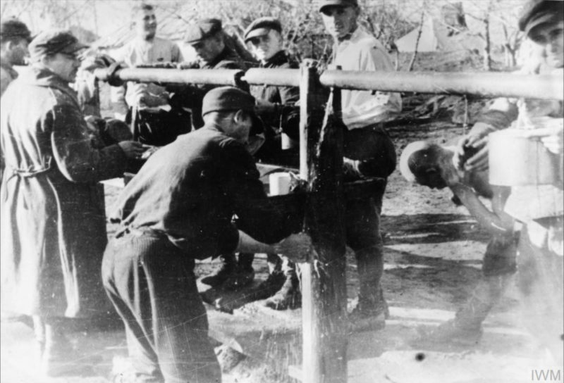 Żołnierze myją się i napełniają manierki wodą, prawdopodobnie obóz w Buzułuku, 1941 r. (fot. ze zbiorów Imperial War Museum, sygn. MH 1829, IWM Non Commercial Licence)