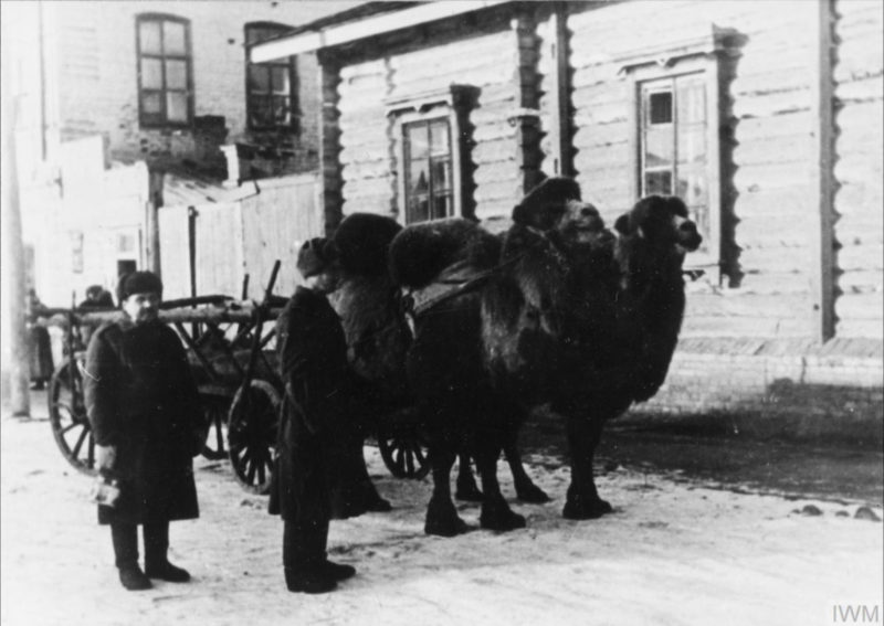 Wielbłądy używane przez żołnierzy polskiej armii do transportu, prawdopodobnie Buzułuk, 1941 r. (fot. ze zbiorów Imperial War Museum, sygn. MH 1828, IWM Non Commercial Licence)