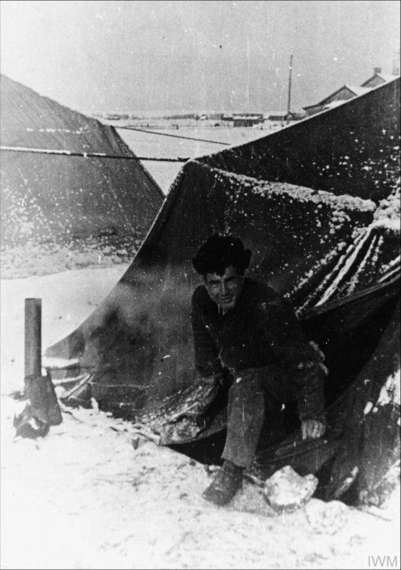 Polski żołnierz przed swoim namiotem w obozie w Buzułuku, grudzień 1941 r. (fot. ze zbiorów Imperial War Museum, sygn. MH 1775, IWM Non Commercial Licence)