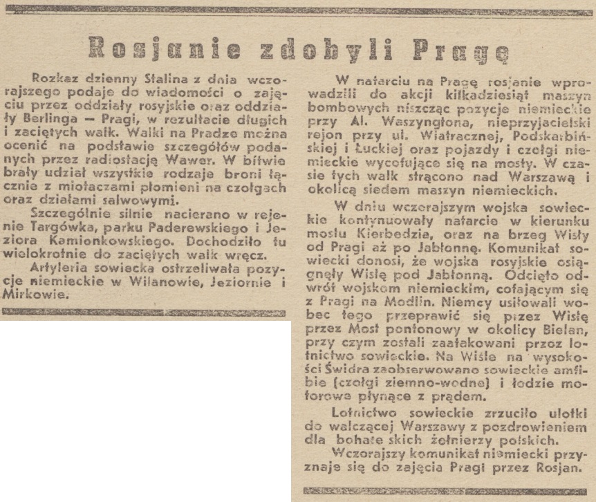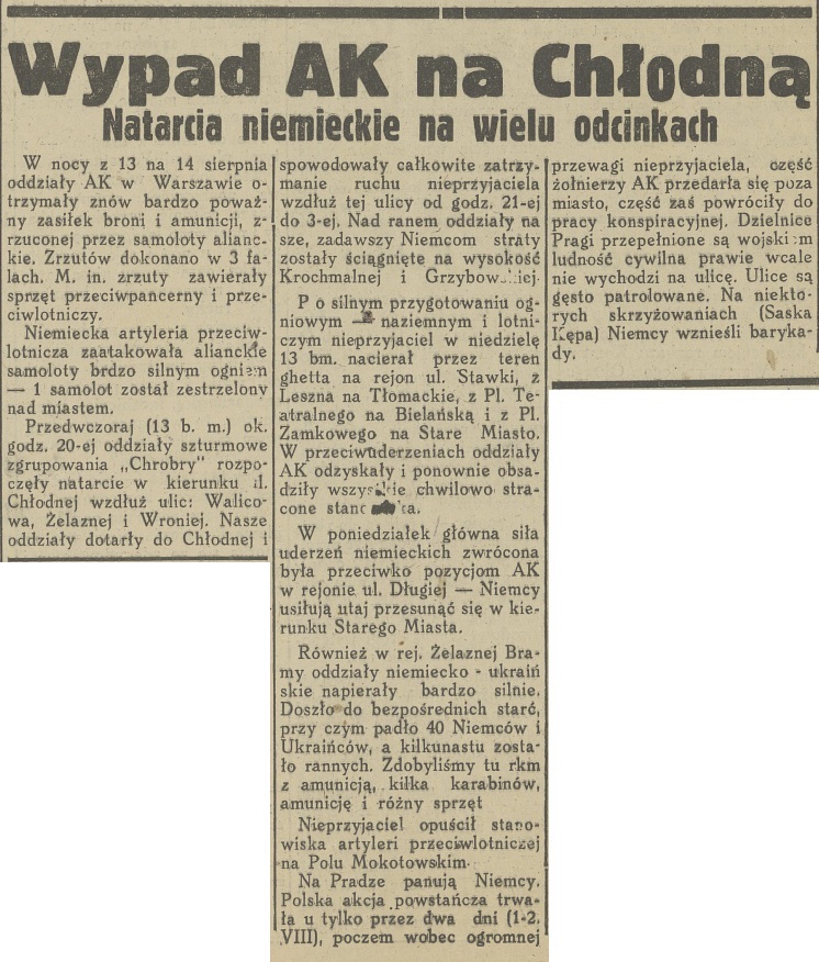 - „Robotnik”, 3 sierpnia 1944, Warszawa.