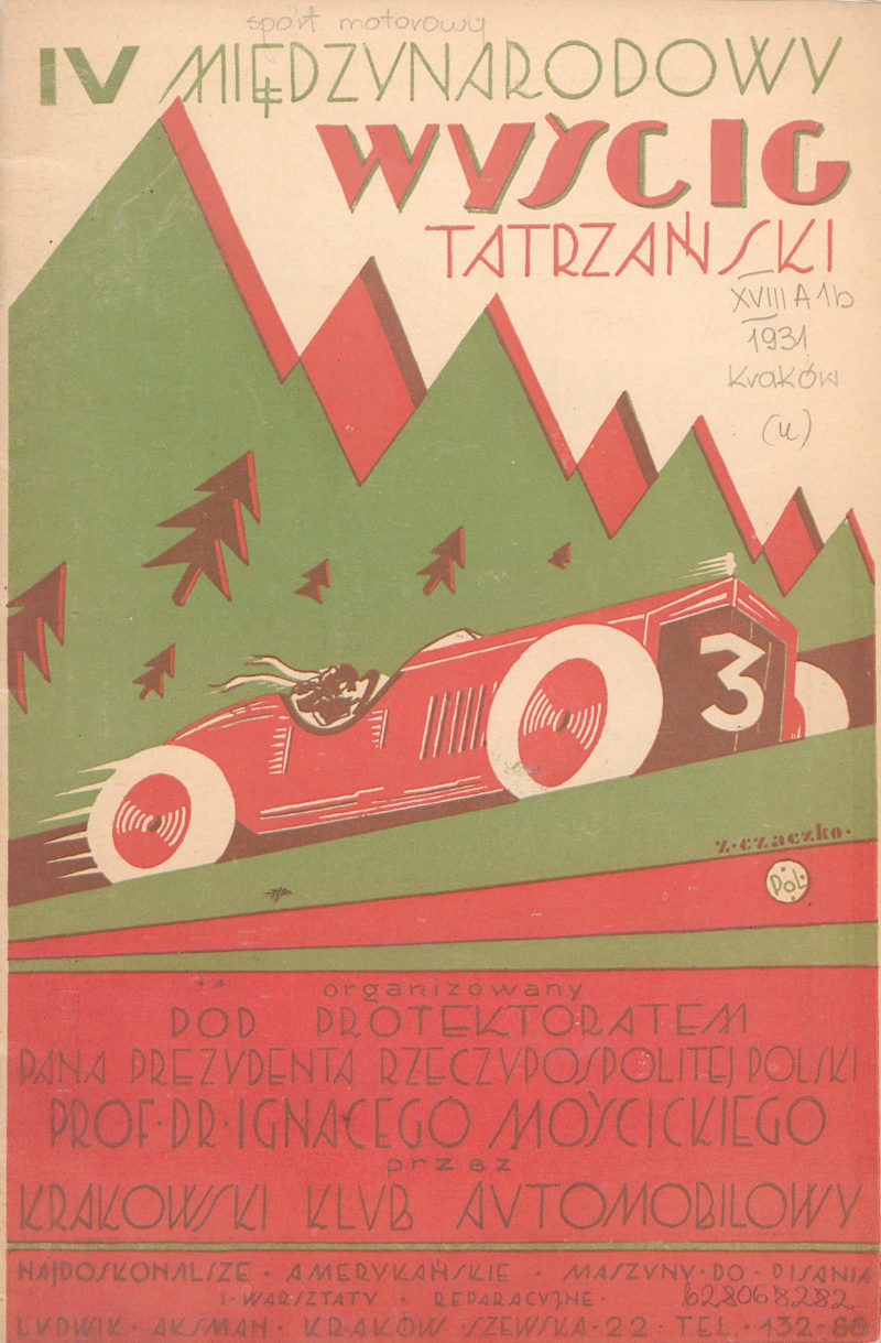 Pierwszy wyścig samochodowy na okładce paryskiego dziennika „Le Petit Journal”, 6 sierpnia 1894 r. (ze zbiorów Bibliothèque nationale de France)Puchar Gordona Benetta w 1903 r. René de Knyff (zajmie drugie miejsce) mija w swoim panhardzie Alexandra Wintona reperującego wintona bulleta 2 (fot. domena publiczna)Mapa trasy Pucharu Gordona Bennetta organizowanego w Irlandii w 1903 r. (Pierre Souvestre, Histoire de l’automobile, éd. H. Dunod et E. Pinat, 1907, domena publiczna)Auguste Doriot w samochodzie Peugeot podczas rajdu Paryż–Rouen, 22 lipca 1894 r. (fot. domena publiczna)Grand Prix Francji, 1906 rok (fot. domena publiczna)Reklama opon Continental Pneumatic, „Ilustrirten Zeitung”, nr 3538, 20 kwietnia 1911 r. (domena publiczna)Fernand Gabriel w samochodzie mors dauphin podczas wyścigu Paryż–Madryt, maj 1903 r. (fot. domena publiczna)Marcel Renault, współzałożyciel koncernu Renault, w czasie wyścigu Paryż–Madryt, 24 maja 1903 r. Niestety, kierowca zginął w wyniku ran poniesionych w wypadku w czasie tego wyścigu (fot. domena publiczna)Afisz wyścigów w Łodzi w 1919 r. (ze zbiorów Biblioteki Narodowej, sygn. DŻS XVIIIA 1b, domena publiczna)Léon Théry, zwycięzca wyścigu o Puchar Gordona Bennetta w latach 1904–1905 w richardzie-brasierze, pocztówka z 1904 r. (domena publiczna)Obserwatorzy międzynarodowego wyścigu samochodowego i motocyklowego we Lwowie w 1926 r. Widoczni m.in.: prezydent Lwowa Józef Neumann (2. z lewej w jasnym garniturze), wojewoda lwowski Paweł Garapich (3. z lewej) (fot. Narodowe Archiwum Cyfrowe, sygn. 1-M-1668-2, domena publiczna)Maria de Lavaux przed starem rajdu samochodowego, ok. 1928 r. (fot. Biblioteka Narodowa, sygn. F.14730/II, domena publiczna)Uczestniczki rajdu samochodowego, ok. 1928 r. (fot. Biblioteka Narodowa, sygn. F.14728/II, domena publiczna)Międzynarodowy wyścig samochodowy na wyspie Man w kwietniu 1934 r. (fot. Narodowe Archiwum Cyfrowe, sygn. 1-M-1701-1, domena publiczna)Zwycięzca Międzynarodowego Wyścigu Masaryk Grand Prix w Brnie – Louis Chiron – z wieńcem, wrzesień 1933 r. (fot. Narodowe Archiwum Cyfrowe, sygn. 1-M-1596-2, domena publiczna)Kierowca Tazio Nuvolari (po lewej) w towarzystwie swego mechanika obok Alfa Romeo podczas wyścigów w Ulsterze w sierpniu 1930 r. (fot. Narodowe Archiwum Cyfrowe, sygn. 1-M-1709-2, domena publiczna)Mężczyzna obserwujący wyścigi międzynarodowy wyścig samochodowy na wyspie Man, lata 30. XX w. (fot. Narodowe Archiwum Cyfrowe, sygn. 1 1-M-1704, domena publiczna)Zwycięzca Międzynarodowego Wyścigu Samochodowego o Puchar Vanderbilta w Westbury w 1936 r. (fot. Narodowe Archiwum Cyfrowe, sygn. 1-M-1675, domena publiczna)Testowanie hamulców przed Międzynarodowym Wyścigiem Samochodowym na torze Brooklands w Weybridge, czerwiec 1926 r. (fot. Narodowe Archiwum Cyfrowe, sygn. 1-M-1689, domena publiczna)Zawody na torze w Monte Carlo. Grand Prix Monaco w kwietniu 1931 r. (fot. Narodowe Archiwum Cyfrowe, sygn. 1-M-1606-1, domena publiczna)Kierowca wyścigowy Brian Lewis w samochodzie Bugatti na finiszu międzynarodowego wyścigu samochodowego na wyspie Man, maj 1935 r. (fot. Narodowe Archiwum Cyfrowe, sygn. 1-M-1703, domena publiczna)Start wyścigu na torze w Monza we wrześniu 1933 r. (fot. Narodowe Archiwum Cyfrowe, sygn. 1-M-1717-2, domena publiczna)Pierwszy okrężny wyścig samochodowy we Lwowie. Inż. Henryk Liefeldt w samochodzie austro-daimler, 1930–1932 r. (fot. Narodowe Archiwum Cyfrowe, sygn. 1-M-1669-4, domena publiczna)Publiczność podczas Międzynarodowego Okrężnego Wyścigu Samochodowego we Lwowie, czerwiec 1932 r. (fot. Narodowe Archiwum Cyfrowe, sygn. 1-M-1671-2, domena publiczna)Międzynarodowy Okrężny Wyścig Samochodowy we Lwowie. Sprawdzanie samochodów przed startem, czerwiec 1932 r. (fot. Narodowe Archiwum Cyfrowe, sygn. 1-M-1671-3, domena publiczna)Najnowszy model wyścigowy marki Mercedes-Benz na torze Monza, marzec 1939 r. (fot. Narodowe Archiwum Cyfrowe, sygn. 1-M-1720, domena publiczna)IV Międzynarodowy Wyścig Tatrzański organizowany pod protektoratem pana Prezydenta Rzeczypospolitej Polski prof. dr. Ignacego Mościckiego przez Krakowski Klub Automobilowy (ze zbiorów Biblioteki Narodowej, sygn. DŻS XVIIIA 1b, domena publiczna)IV Międzynarodowy Wyścig Tatrzański, sierpień 1931 r. (fot. Narodowe Archiwum Cyfrowe, sygn. 1-M-1667-15, domena publiczna)Wyścigi w Argentynie. Carlos Zatuszek (za kierownicą) i Miguel Berndt w samochodzie mercedes SSK, 1931–1936 r. (fot. Narodowe Archiwum Cyfrowe, sygn. 1-E-469, domena publiczna)Międzynarodowy Okrężny Wyścig Samochodowy we Lwowie, lata 30. XX w. (fot. Narodowe Archiwum Cyfrowe, sygn. 1-M-1672-4, domena publiczna)Międzynarodowy Okrężny Wyścig Samochodowy we Lwowie, czerwiec 1932 r. (fot. Narodowe Archiwum Cyfrowe, sygn. 1-M-1671-16, domena publiczna)Międzynarodowy Okrężny Wyścig Samochodowy we Lwowie. Jeden z uczestników stoi przy samochodzie, którym wjechał w worki z piaskiem ułożone na wirażu, czerwiec 1932 r. (fot. Narodowe Archiwum Cyfrowe, sygn. 1-M-1671-24, domena publiczna)