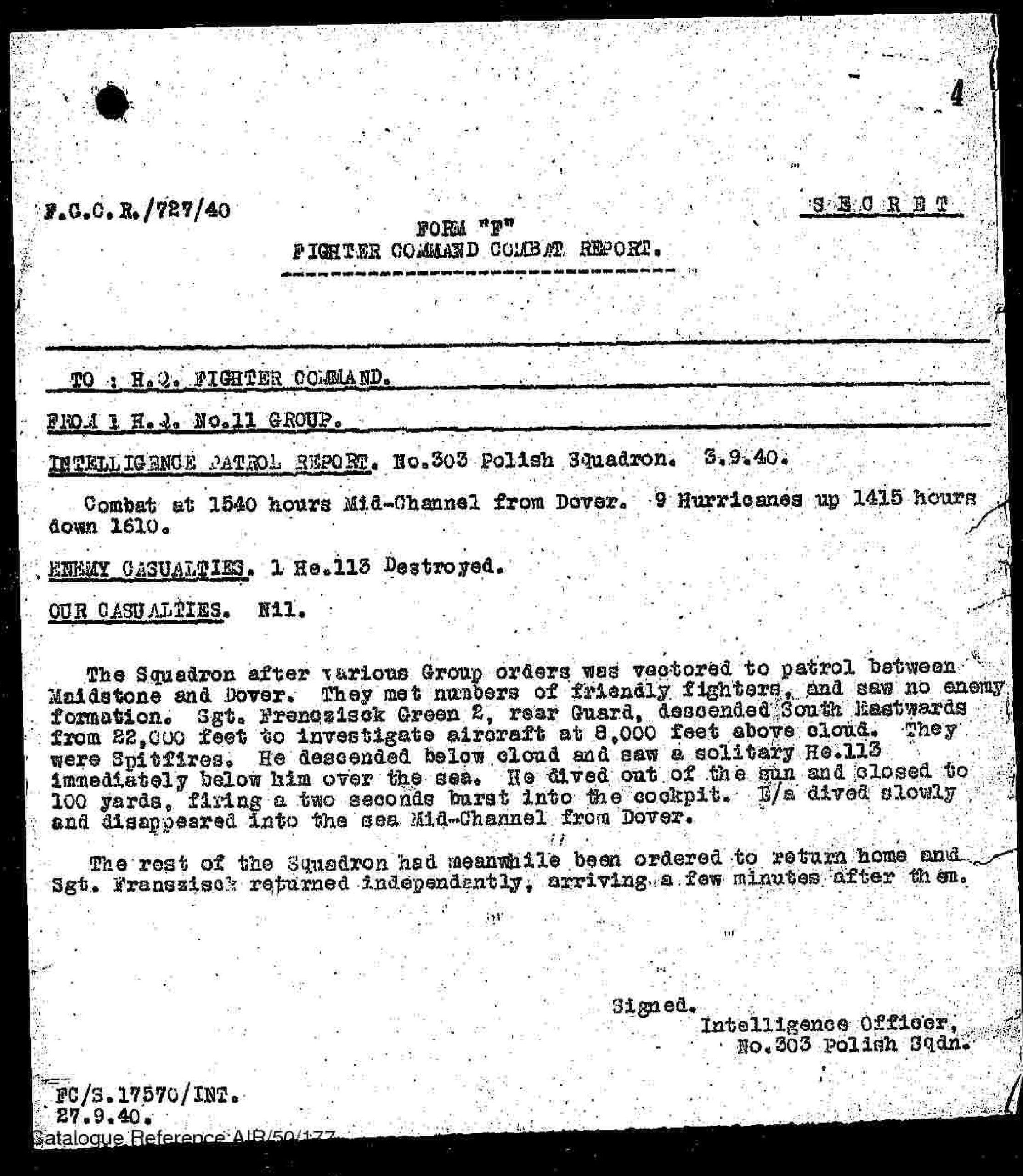 Źródło: J.B. Cynk, Sprawa polskiego udziału w zwycięstwach myśliwskich w Bitwie o Wielką Brytanię, „Aero. Technika lotnicza”, nr 1/1993, s. 37.