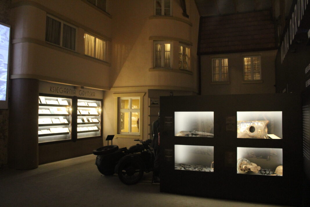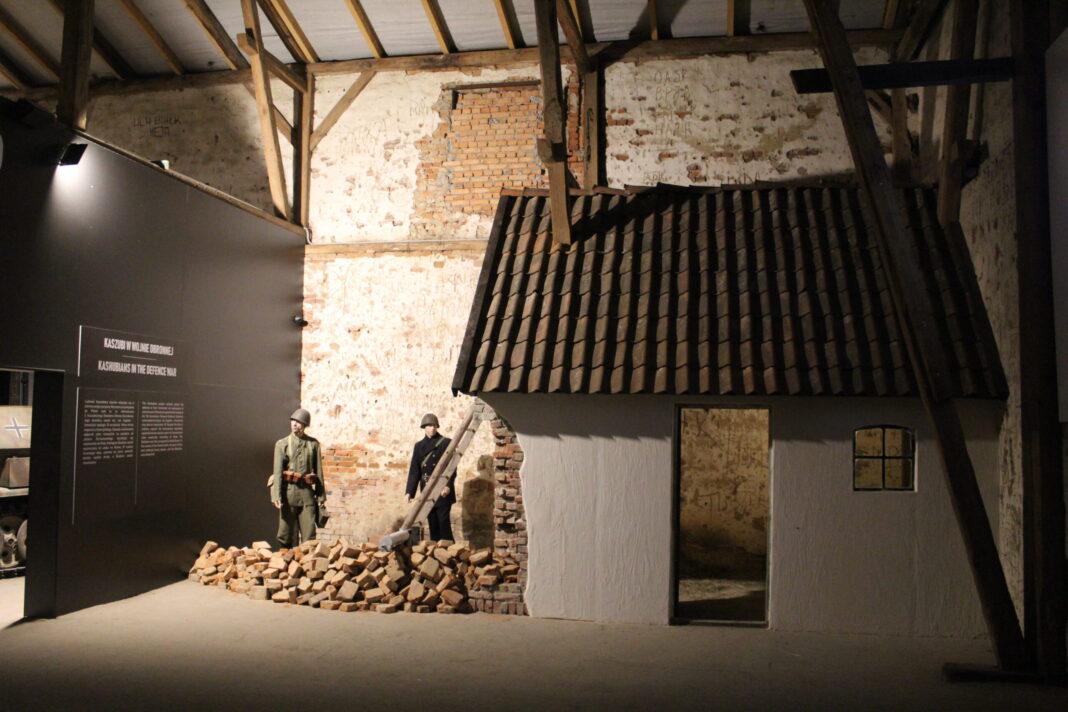 Pierwsza część ekspozycji poświęcona jest problematyce kampanii polskiej 1939 roku, a ponadto porusza temat udziału Kaszubów w walkach na Pomorzu. Jest to więc jakby element związany bardziej z Muzeum Techniki Militarnej i Historii Pomorza niż Muzeum Pojazdów Wojskowych i Uzbrojenia. Patrząc na dosyć przestronną ekspozycję, łatwo wyczuć pewną inspirację uliczką urządzoną w Muzeum II Wojny Światowej lub też podobną myśl stojącą za ich powstaniem. We wspomnianej stodole znajdziemy m.in. fragment budynku, witrynę księgarni i apteki.