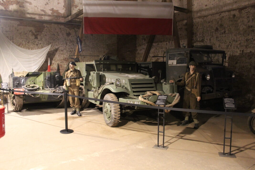 Dalsza część muzeum poświęcona jest już przede wszystkim sprzętowi cięższemu od motocykla BMW R-71 prezentowanego wcześniej. Poruszając się zgodnie z kierunkiem zwiedzania, natrafimy m.in. na niemieckie transportery opancerzone Sd.Kfz. 251/6 i 251/7, działo samobieżne StuG III G, działa przeciwlotnicze 88 mm FLAK 36 i 20 mm FLAK 38 oraz czołg Pz.Kpfw. IV J (wypożyczony z Muzeum Oręża Polskiego w Kołobrzegu). Aliancki sprzęt pancerny reprezentują z kolei transporter opancerzony M3 Halftrack, Universal Carrier i samochód opancerzony M-8 Greyhound. Oczywiście, w muzeum pancernym położonym w Polsce nie mogło zabraknąć także sowieckiego T-34 z działem 85 mm.