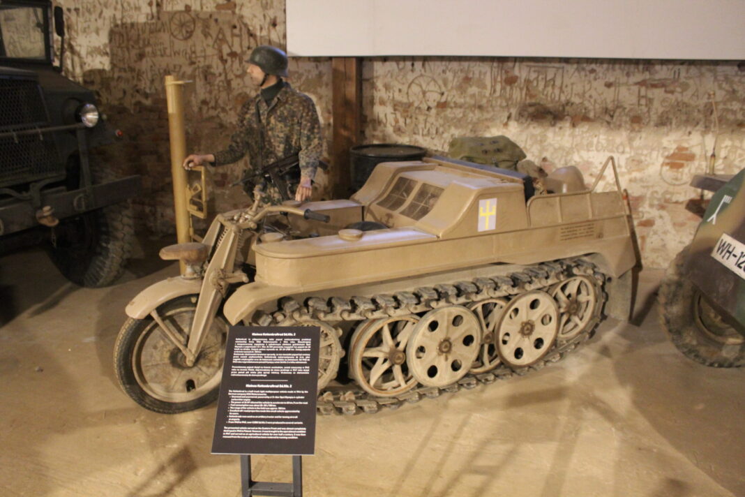 Całość dopełnia niemiecki motocykl gąsienicowy Sk.Kfz.2, samochód Volkswagen Typ 82 (słynny Kübelwagen) i ciężarówka Chevrolet CMP. Ostatnia sala poświęcona jest z kolei elementom maszyn odkrytych przy różnych okazjach; zobaczymy tam przede wszystkim elementy kolejnego działa samobieżnego StuG III i niemieckiego myśliwca Me-109 G-14.