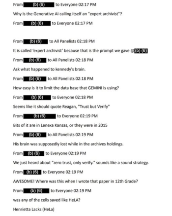 Również w zeszłym roku władze NARA poinformowały swoich pracowników o pomyśle stworzenia bota Archie AI mającego, jak ChatGPT, wspierać korzystanie ze zbiorów. W październiku odbyło się szkolenie online „AI-mazing Tech-venture”. Archiwistom przedstawiono możliwości chata korzystającego z usługi Vertex AI firmy Google, która pozwala na uzupełnianie „wiedzy” modelu językowego przez własne zasoby instytucji.